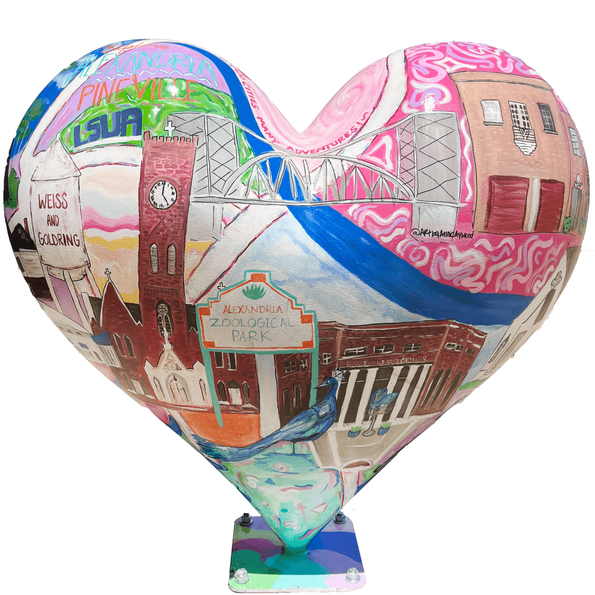 Spearheaded by Explore Alexandria/Pineville, The Community Heart Project seeks to unite residents through the power of art and creativity. By showcasing diverse artistic expressions, this project will enrich the cultural landscape of the Alexandria/Pineville area. The installation of vibrant, heart-shaped sculptures will serve as eye-catching attractions for both locals and visitors, helping to promote tourism and pride in our region. These heart-shaped installations will stand as lasting symbols of unity, creativity, and love for generations to come. The Community Heart Project encourages community members to actively participate in beautifying their surroundings, fostering a deep sense of ownership, connection, and pride.
